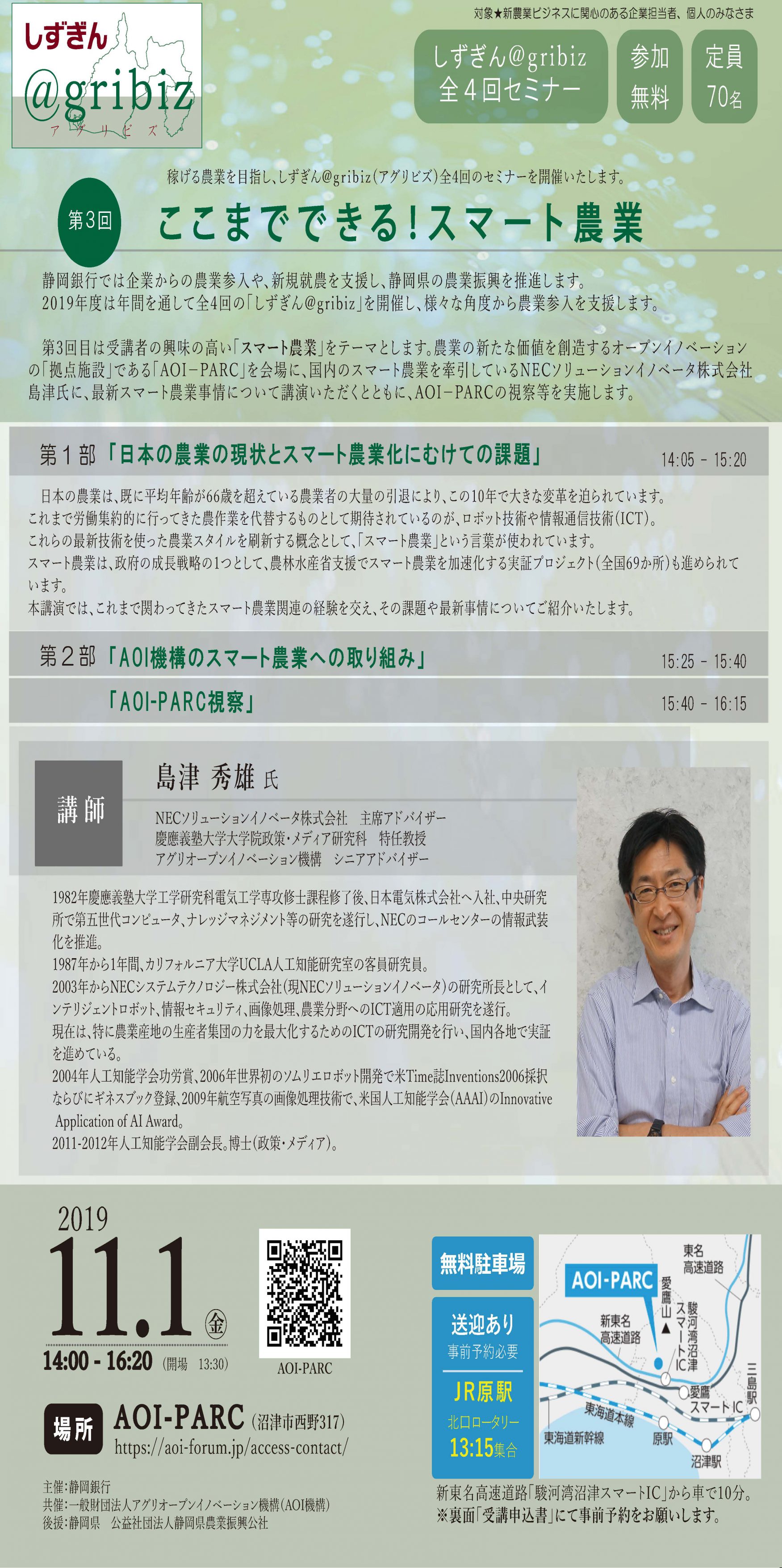 AOI機構では、AOIフォーラム会員である静岡銀行と共催で「しずぎん@gribiz」を開催します。