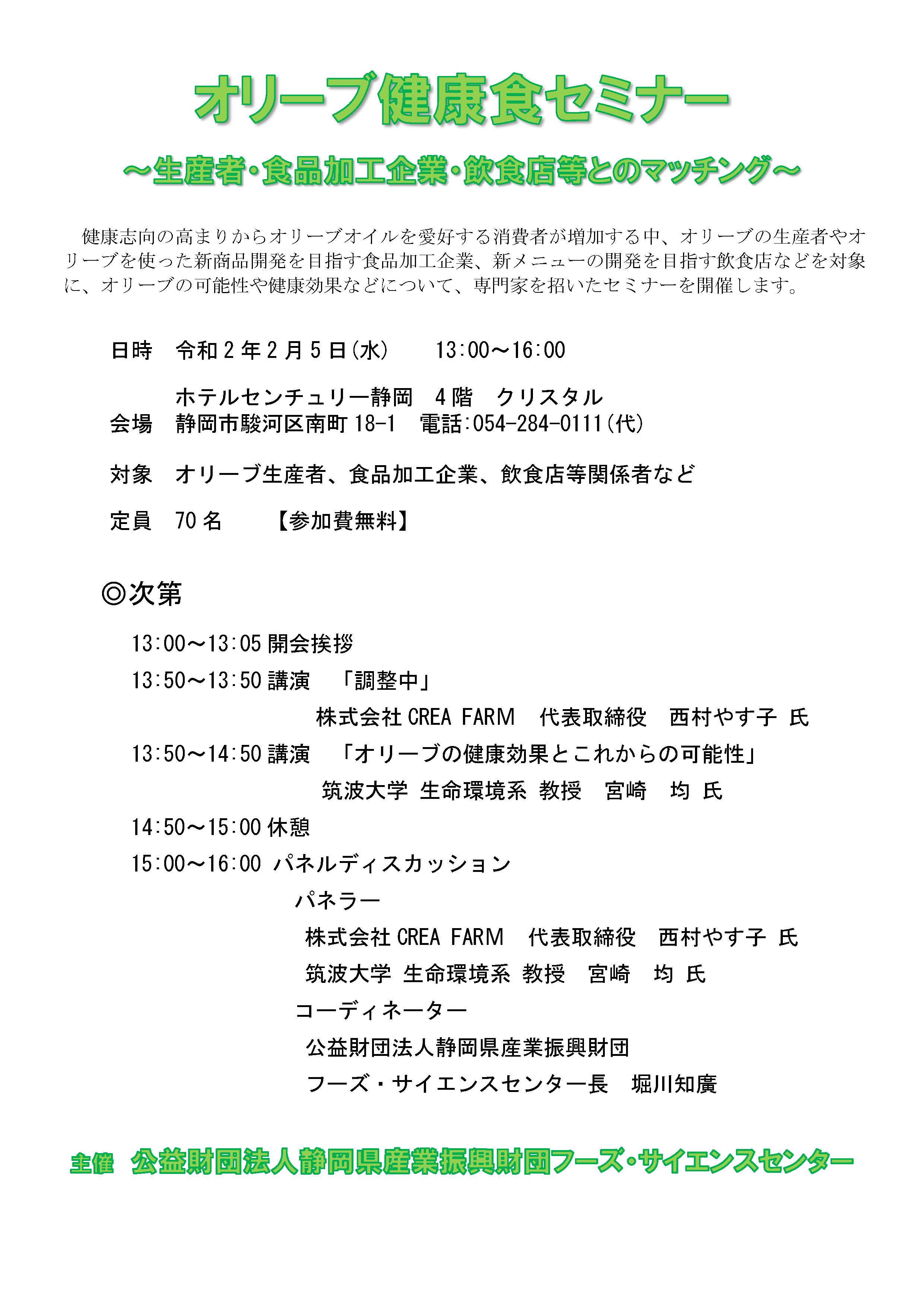 AOIフォーラムサポーター会員の公益財団法人静岡県産業振興財団フーズ・サイエンスセンターが「オリーブ健康食セミナー」を開催します。