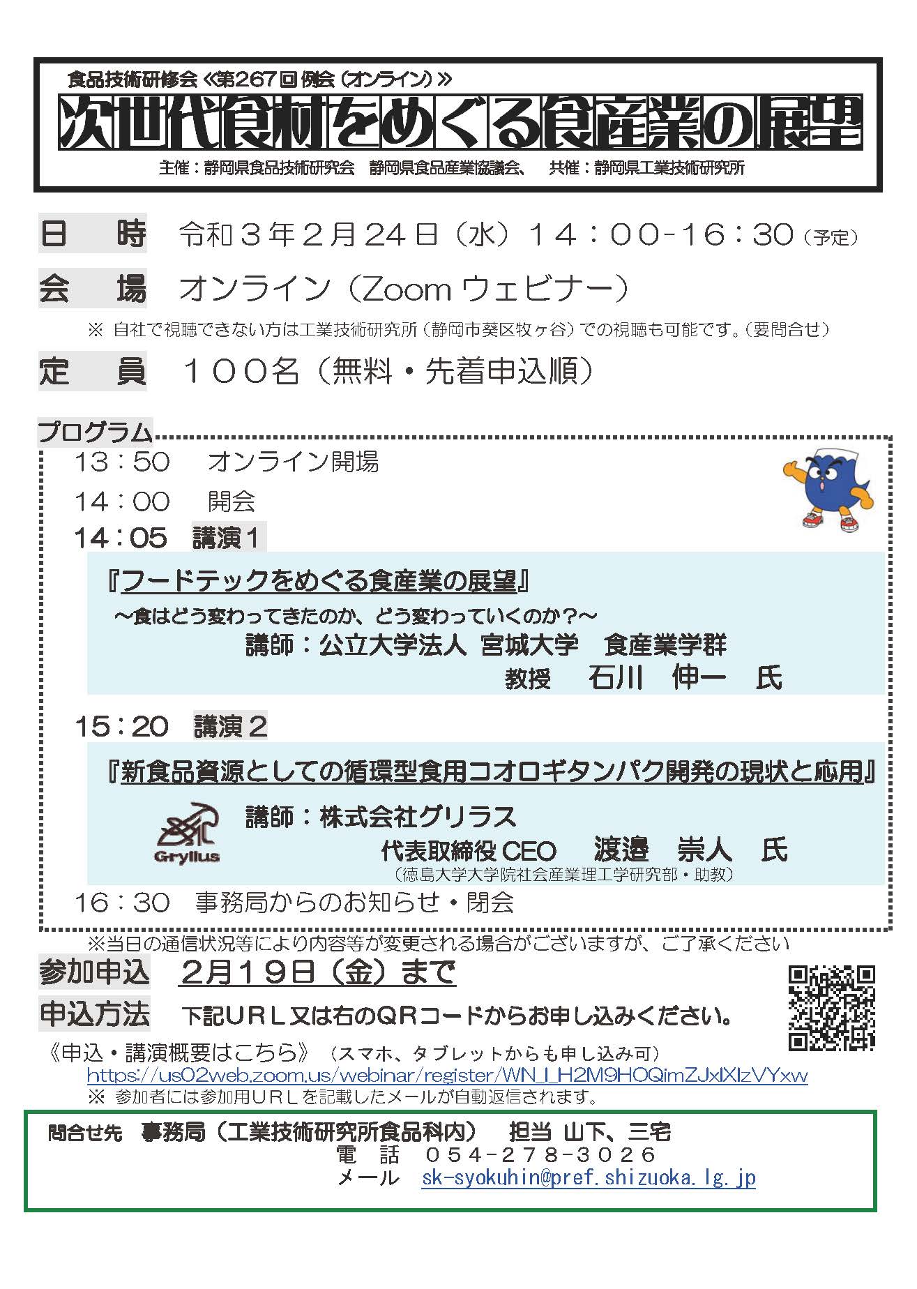| 配信サービス | Zoomウェビナー ※自社で視聴できない方は工業技術研究所(葵区牧ケ谷)での視聴も可能です。(要問合せ)  |
