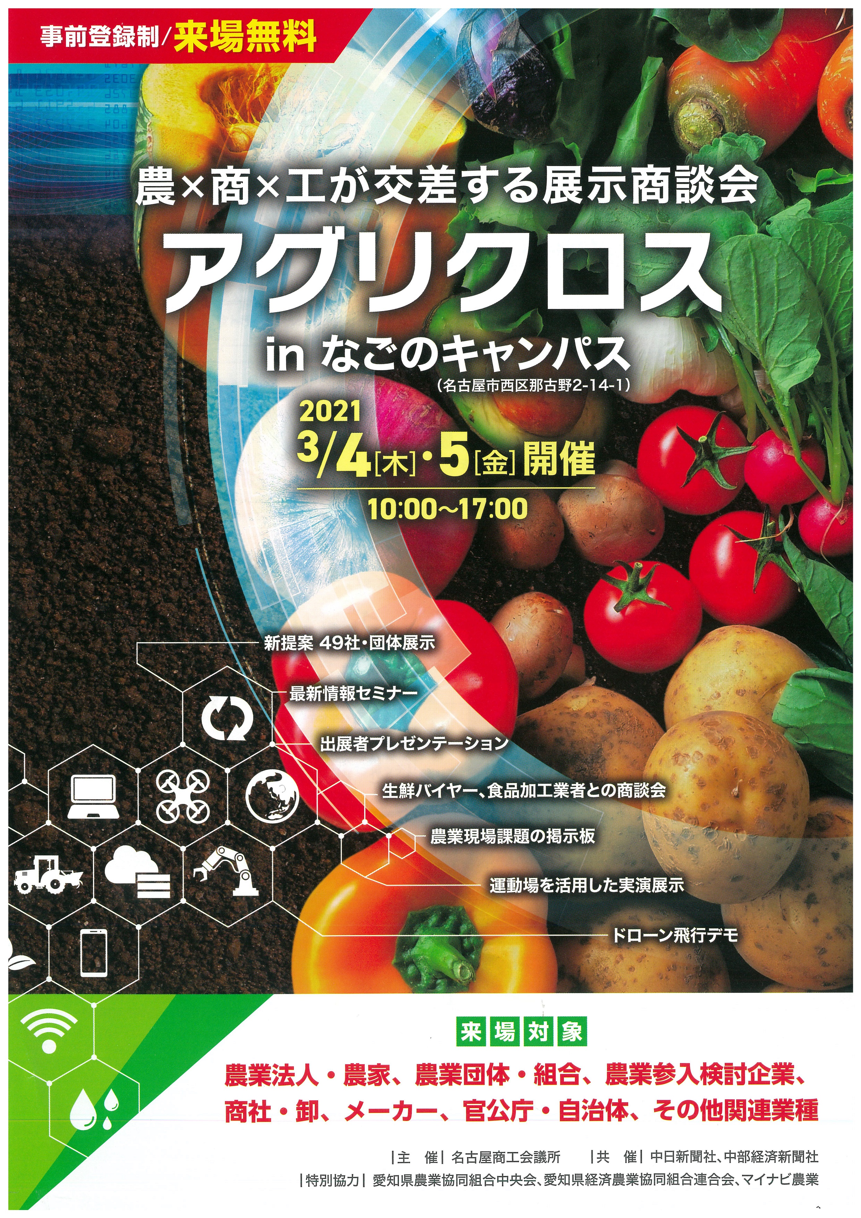 3月4日、5日に開催される「アグリクロスinなごのキャンパス」にAOI機構が出展します。
