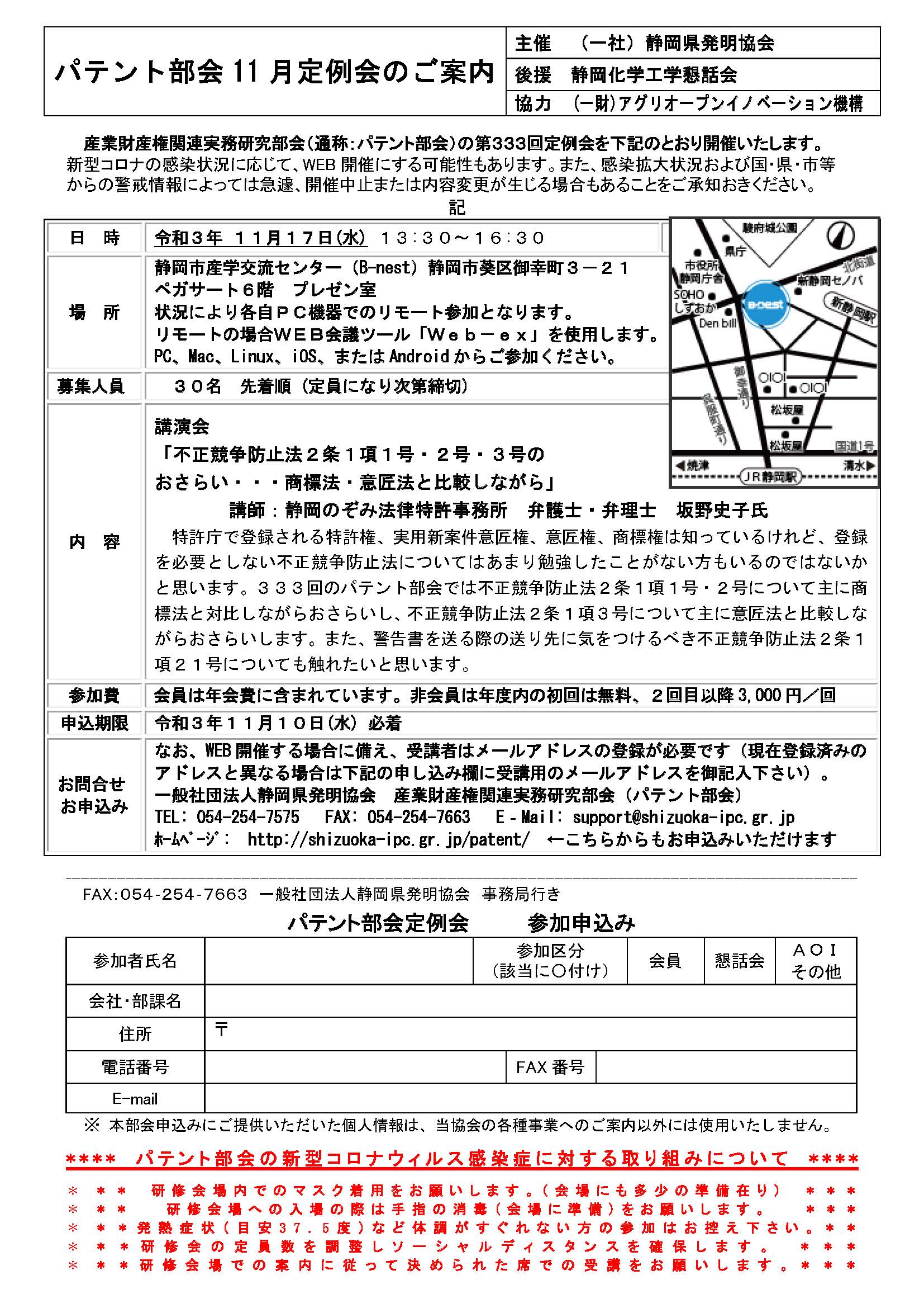 AOIフォーラムサポーター会員である(一社)静岡県発明協会が産業財産権関連実務研究部会(通称: パテント部会)を設置しています。