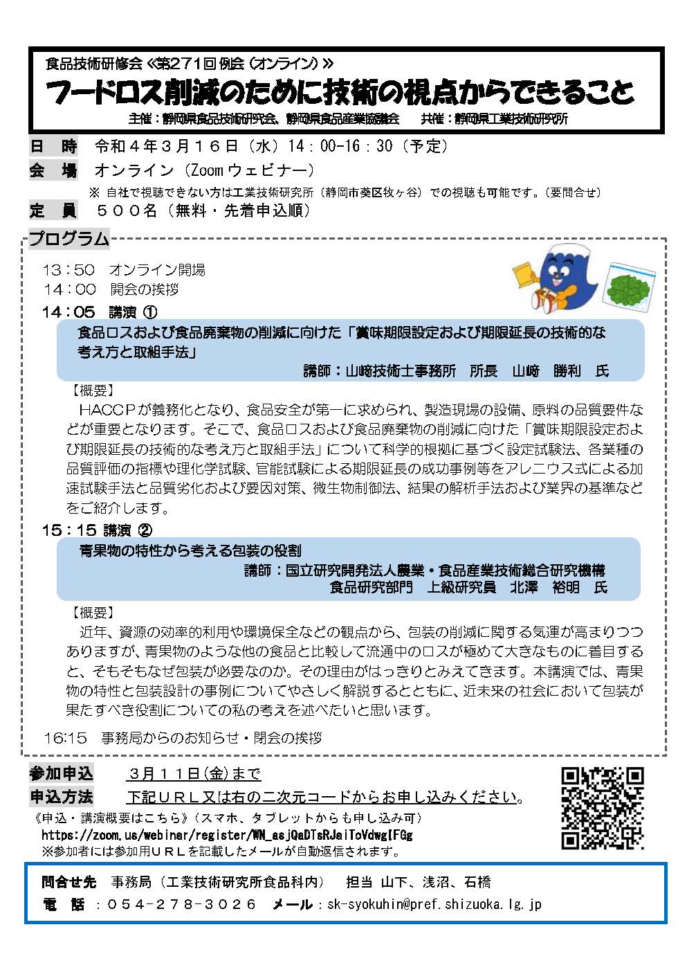 AOIフォーラムサポーター会員の静岡県食品技術研究会が「食品技術研修会(第271回例会)」を3月16日(水)に開催します。