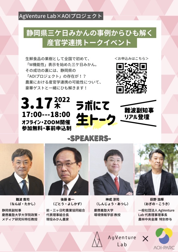 AgVenture Lab×AOIプロジェクト〜静岡県三ケ日みかんの事例からひも解く 産官学連携トークイベント〜