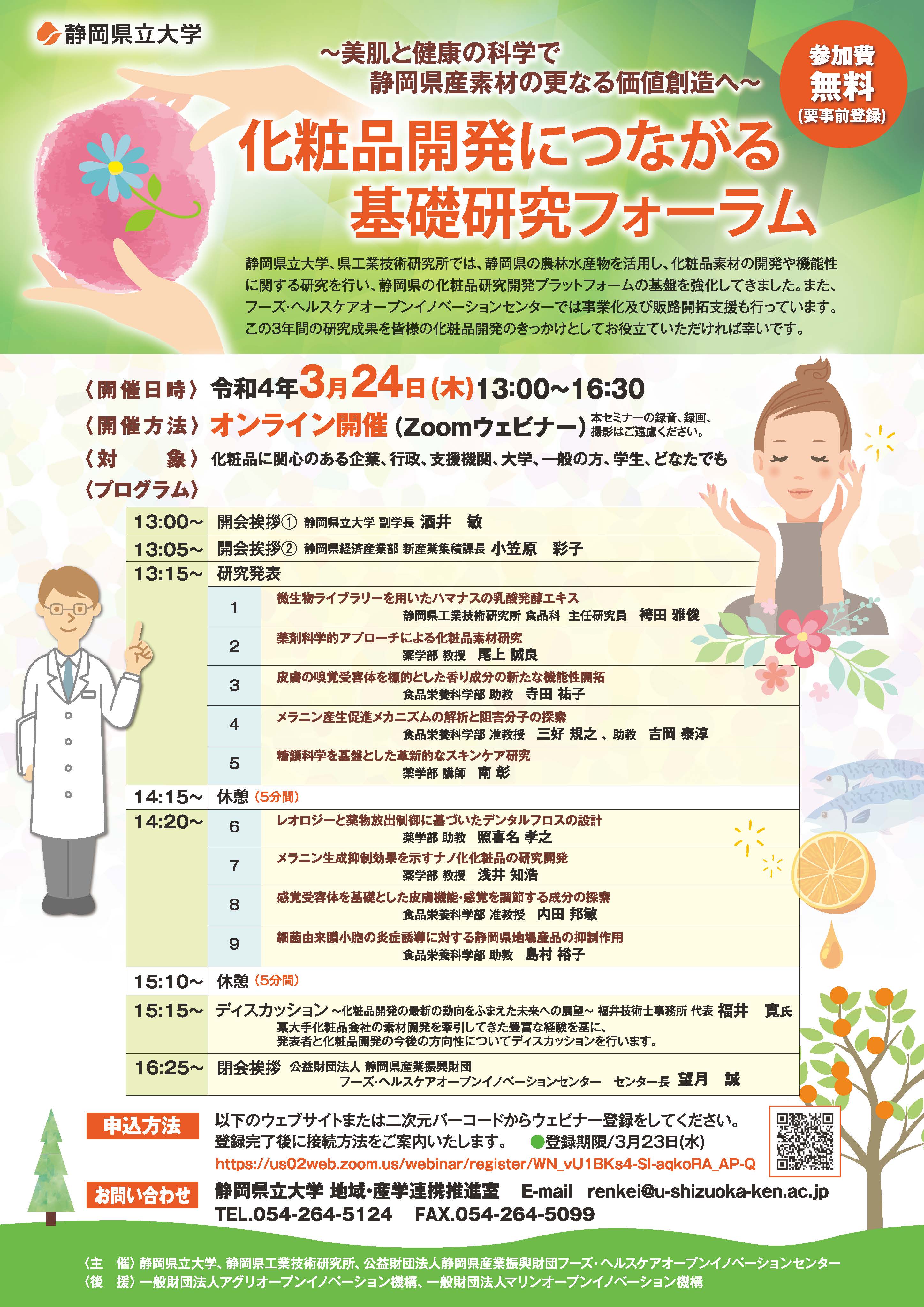 「化粧品開発につながる基礎研究フォーラム」~美肌と健康の科学で静岡県産素材の更なる価値創造へ~