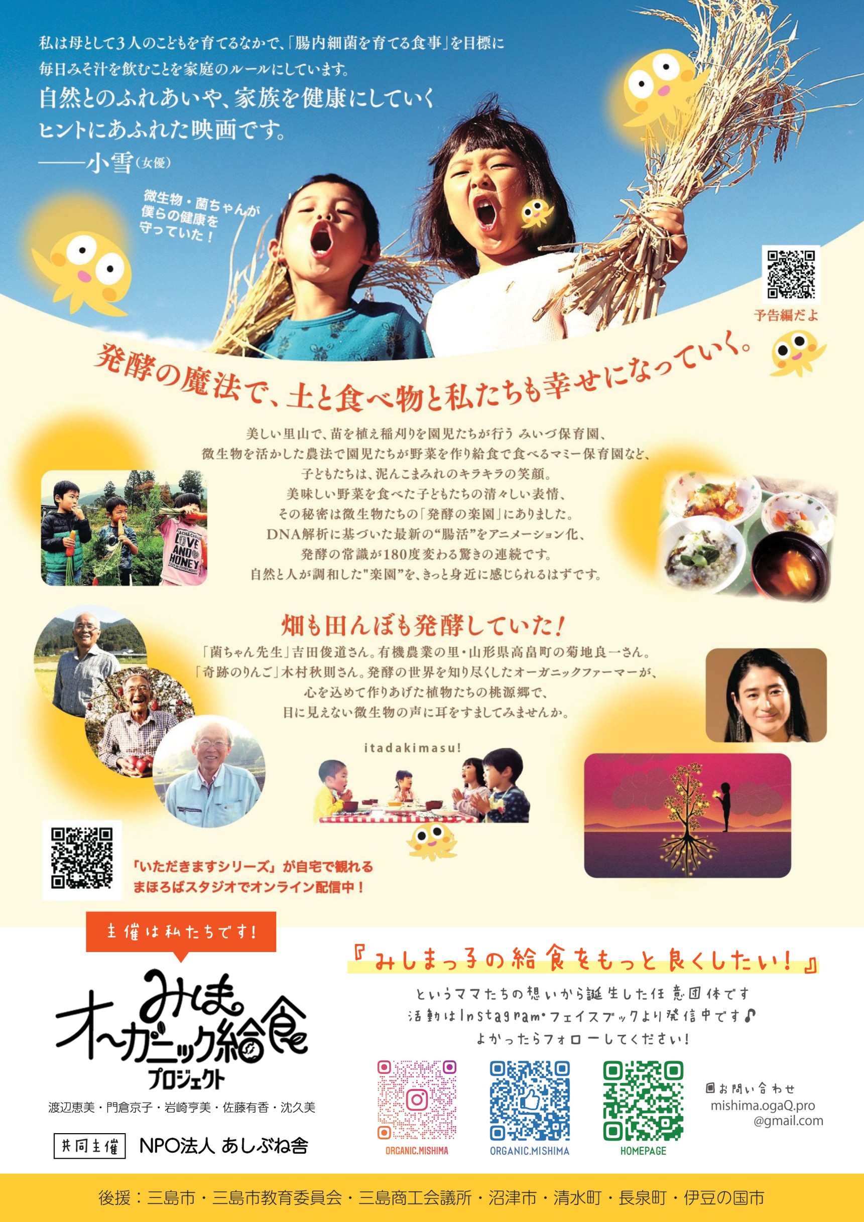農林水産省がタイアップしている映画「いただきます2」が三島市内で上映されます。
