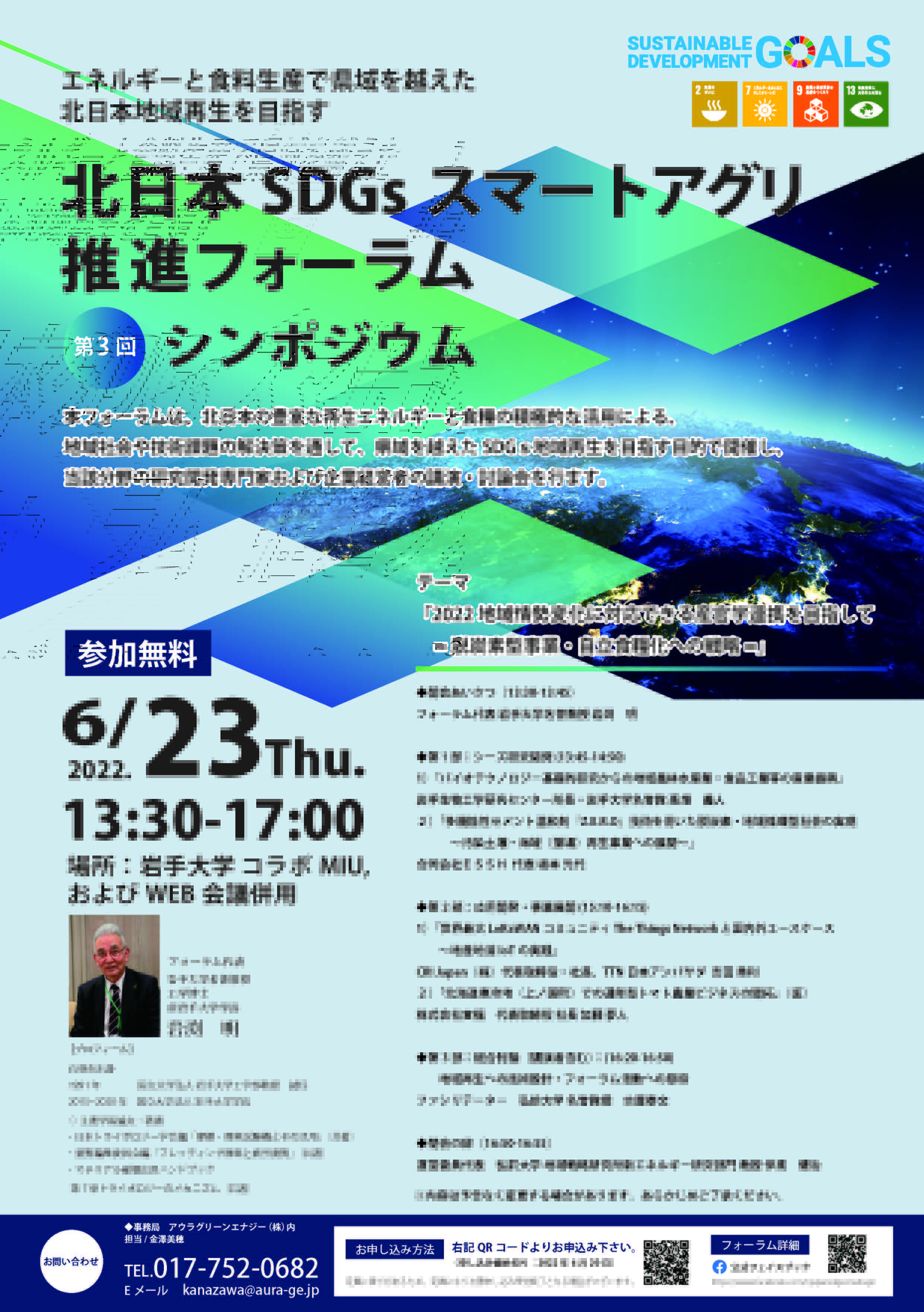 6月23日に第3回北日本SDGs スマートアグリ推進フォーラムシンポジウムが開催されますので、御案内します。
