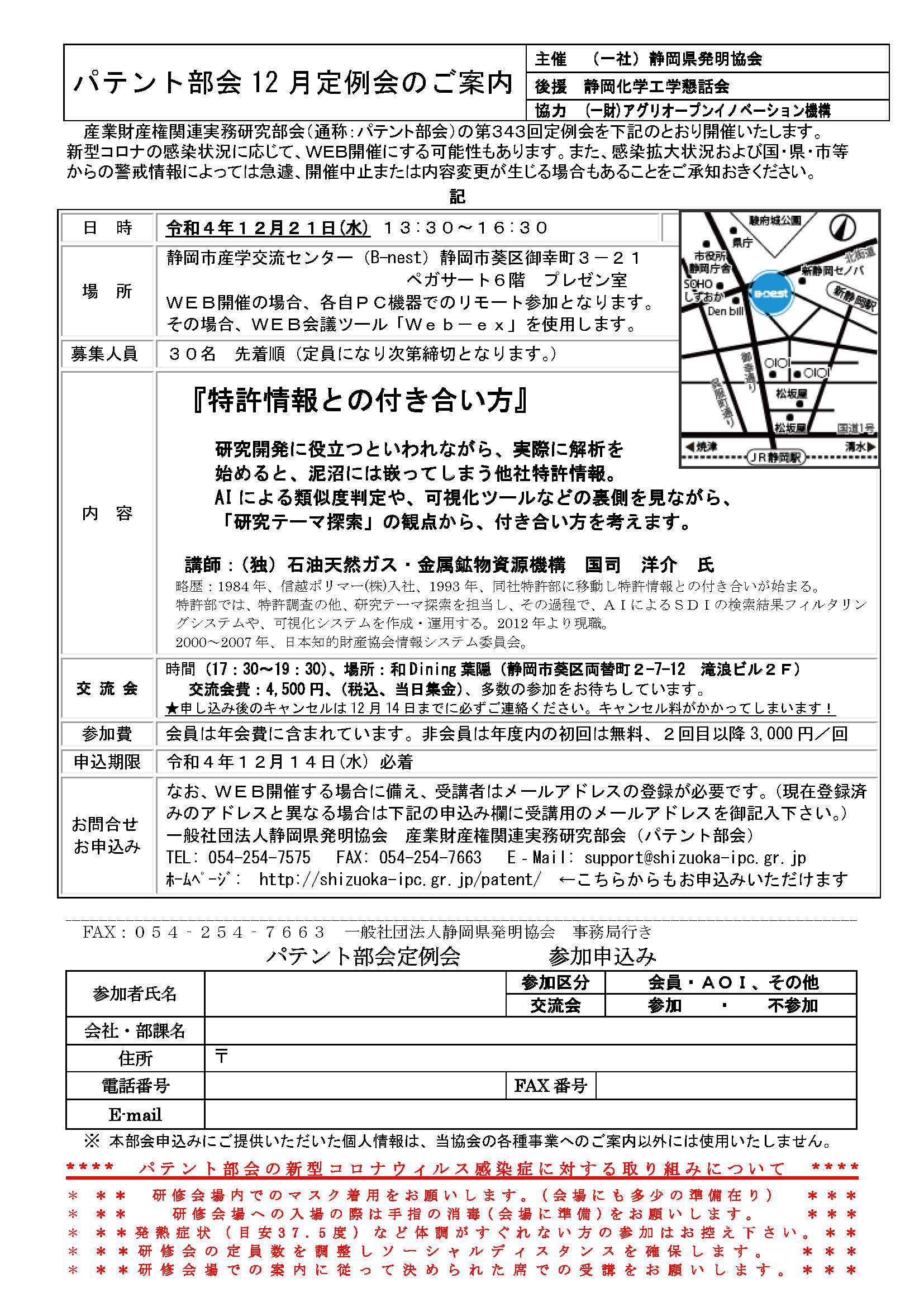 一般社団法人静岡県発明協会 産業財産権関連実務研究部会(パテント部会)