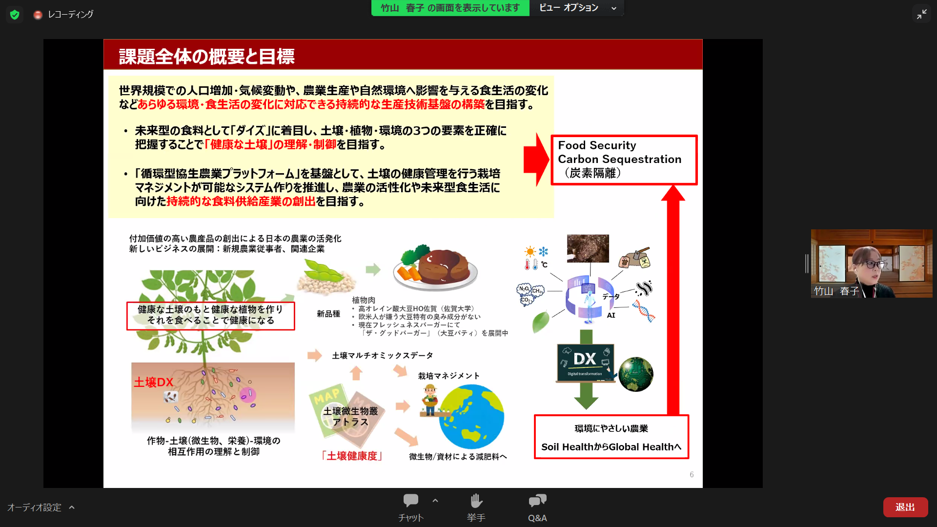 このような状況の中、ムーンショットは土壌をターゲットとして環境とのハーモニーを考えしつつ、良質なたんぱく源の量産を目指し、日々研究を進めています。また、研究には社会科学的視点も忘れてはいけません。社会に許容され、消費者の行動を変えていくことが重要視されています」