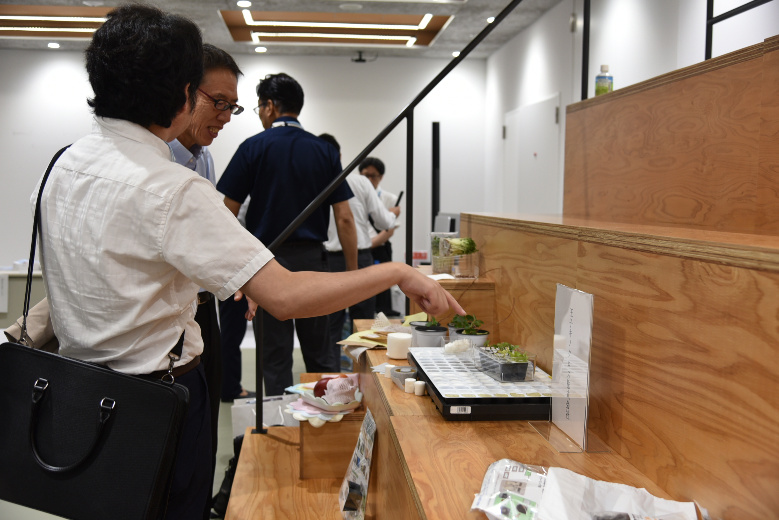 23会員によるプレゼンテーションのあとは、製品サンプルを持参いただいた会員による製品のプレゼンテーションが行われました。また、会場後方には製品の展示や、静岡県農林技術研究所加工技術科による発酵食品の試食等が設置され、多くの会員の興味を惹いていました。
