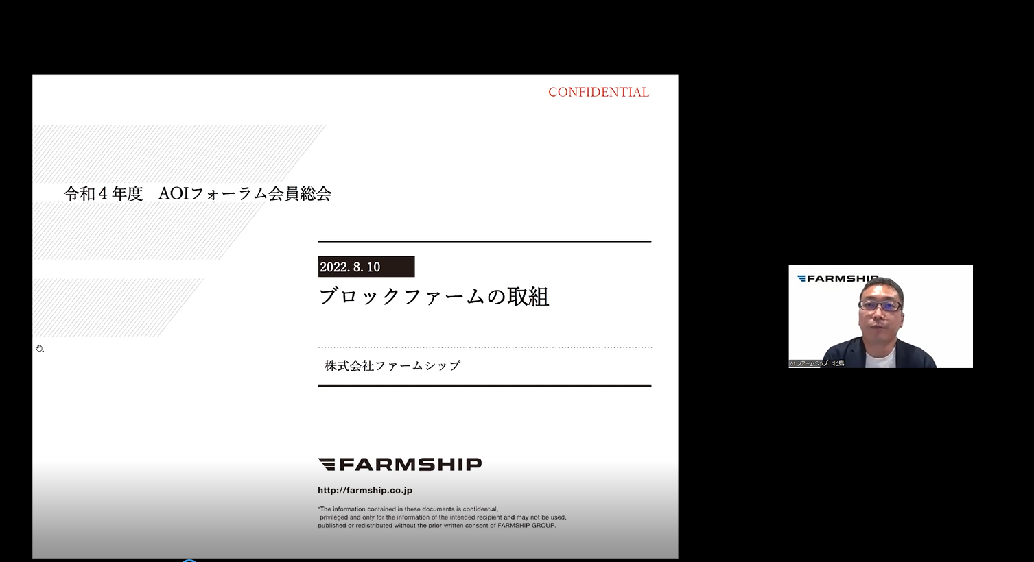 続いて、株式会社ファームシップの北島正裕代表取締役から、新事業「ブロックファーム事業」についてご講演をいただきました。