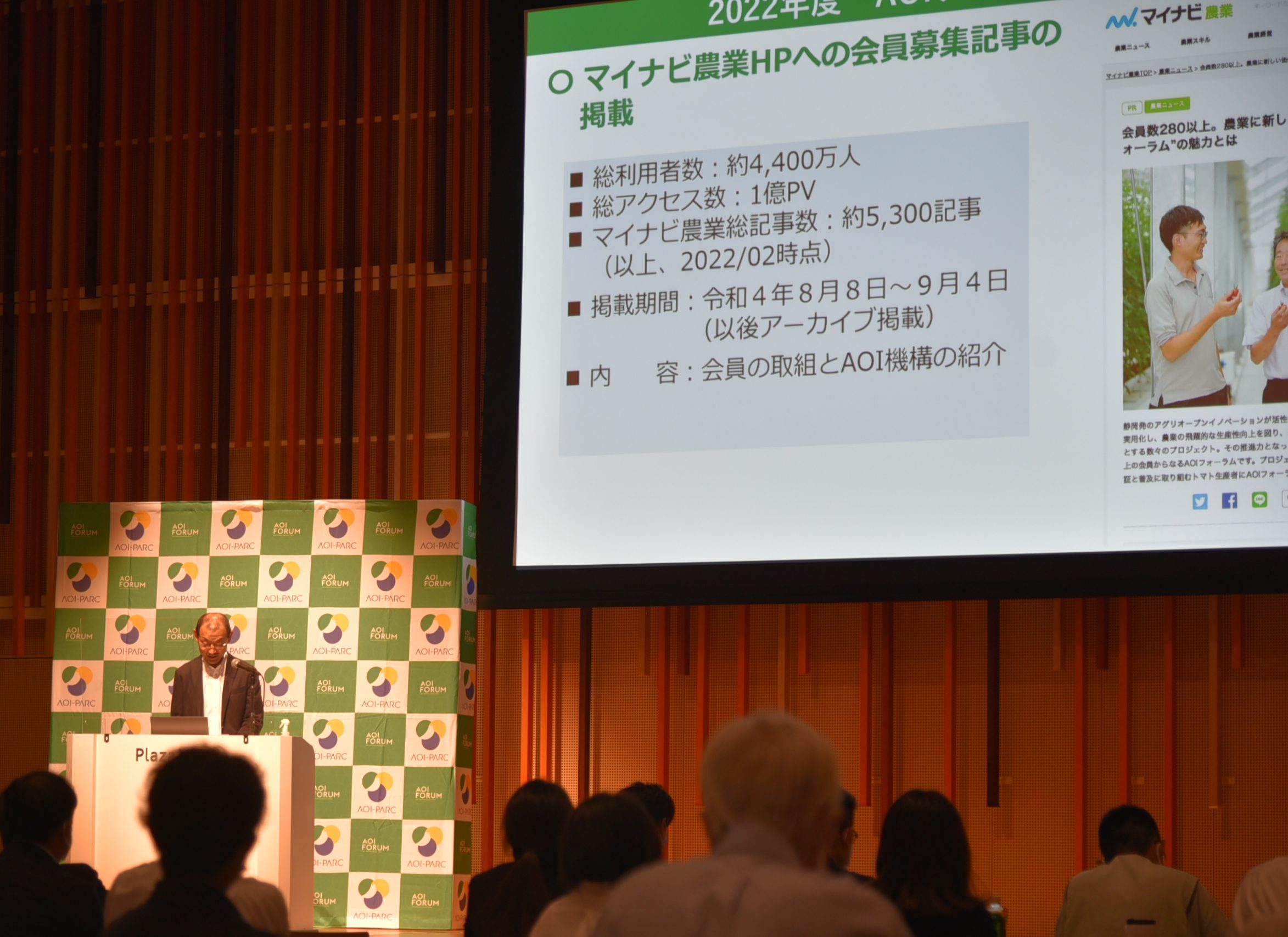 最後に野秋氏は「ファームレスのモデルをAOIフォーラム会員の企業とともにつくっていければと思います。興味、ご関心があればお声がけください。」と参加者に向けて呼びかけました。
