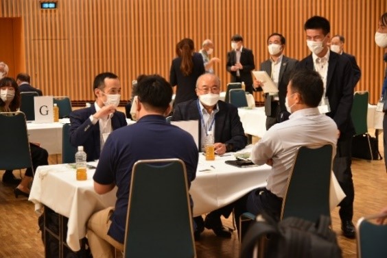 製品PRのプレゼンテーションタイムの後は、会員相互の理解をさらに深め、ビジネスマッチングの機会を提供するため、自由交流会の時間が設けられました。会場後方には参加会員のサンプル製品やパンフレットが置かれ、多くの会員が興味深そうに手に取っていました。