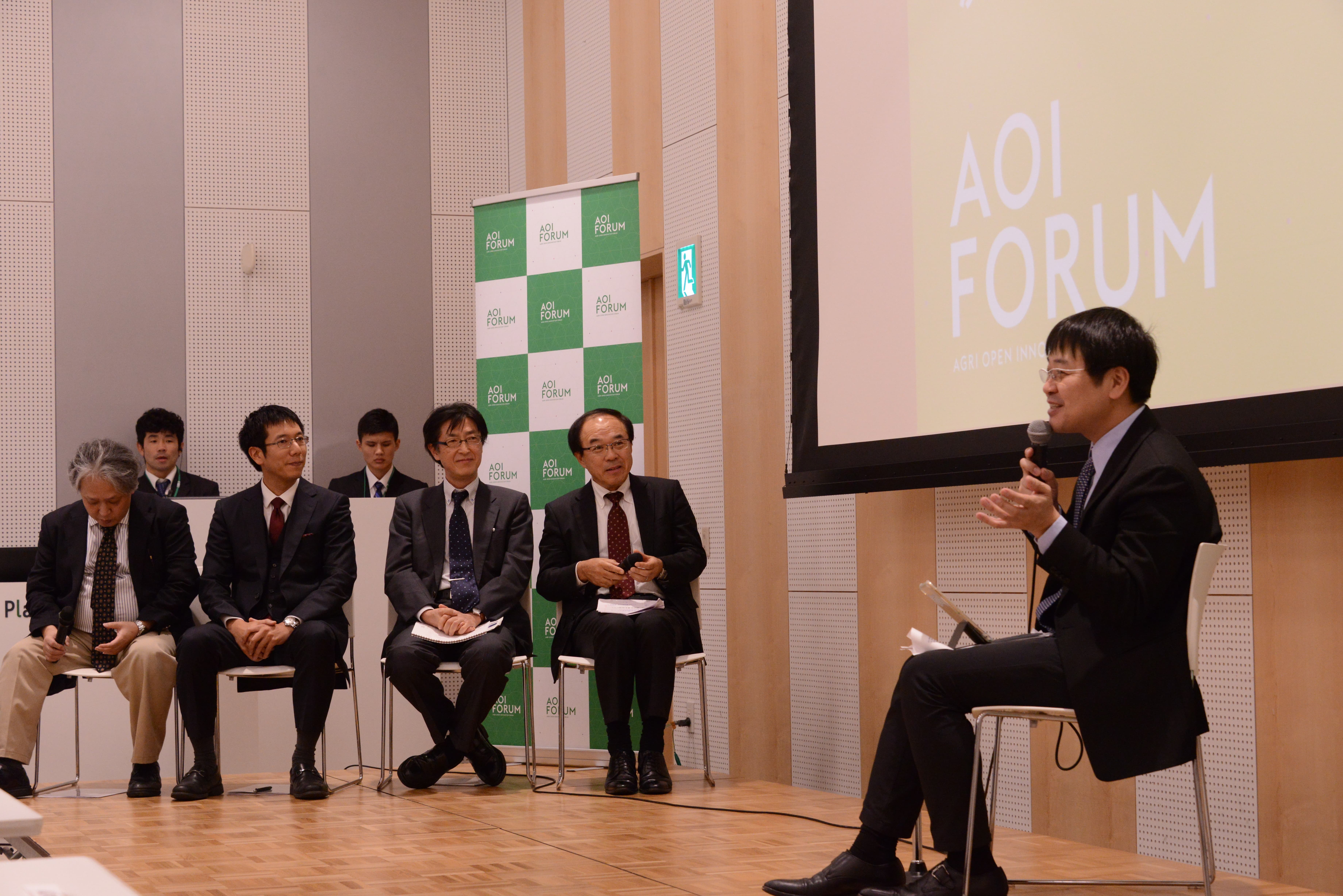 続いて、パネルディスカッション「静岡農業のこれから」が行われました。司会は神成淳司准教授。登壇者は、三ケ日町農業協同組合代表理事組合長の後藤善一氏。NECソリューションイノベータ株式会社執行役員の島津秀雄氏。先に特別講演を行った矢作尚久准教授。理化学研究所光量子制御技術開発チームリーダーの和田智之氏。それぞれの専門分野から、熱い議論が交わされました。