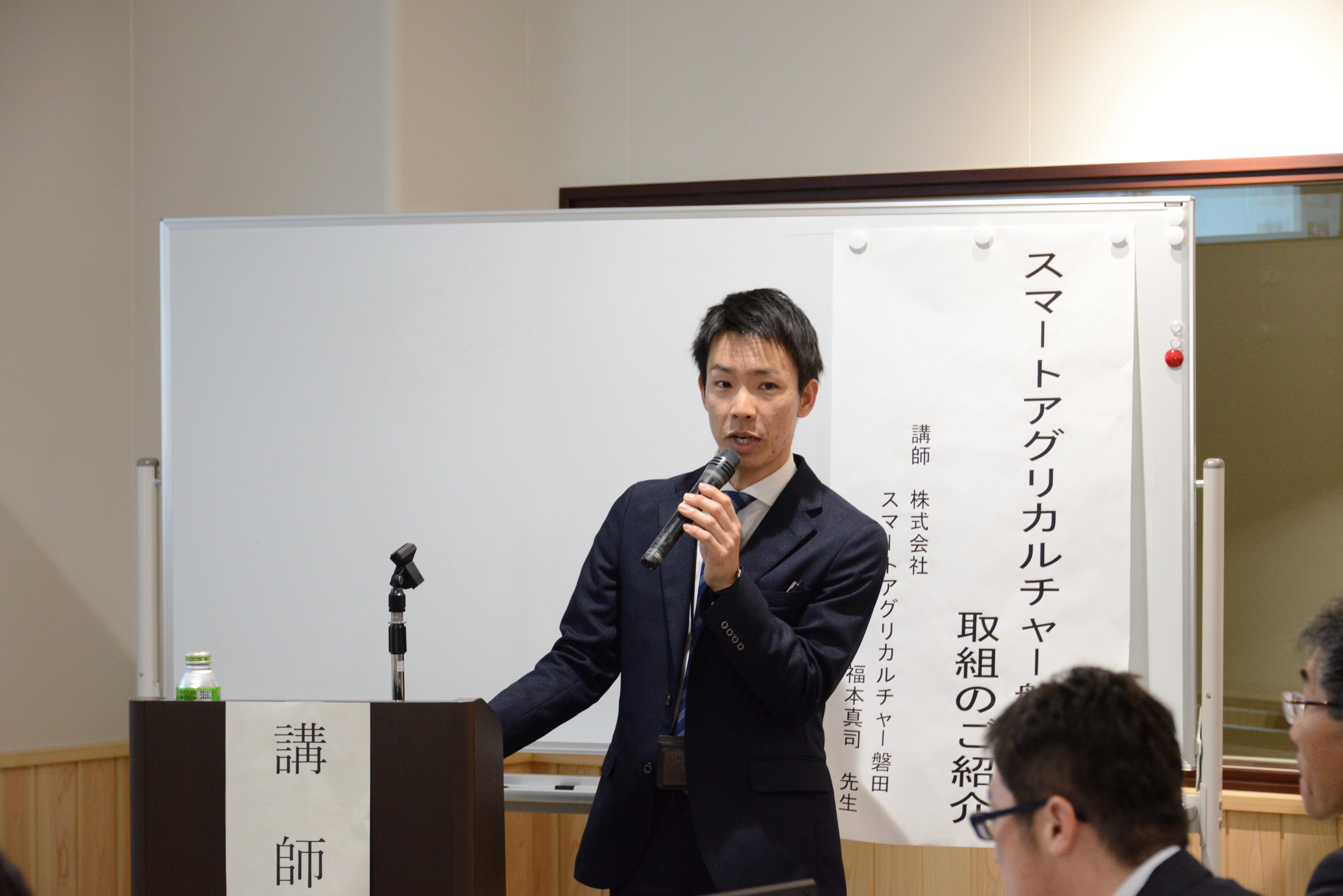 続いて、AOI-PARC入居事業者である、株式会社スマートアグリカルチャー磐田の福本真司氏に「スマートアグリカルチャー磐田の取り組みのご紹介」をご講演いただきました。
