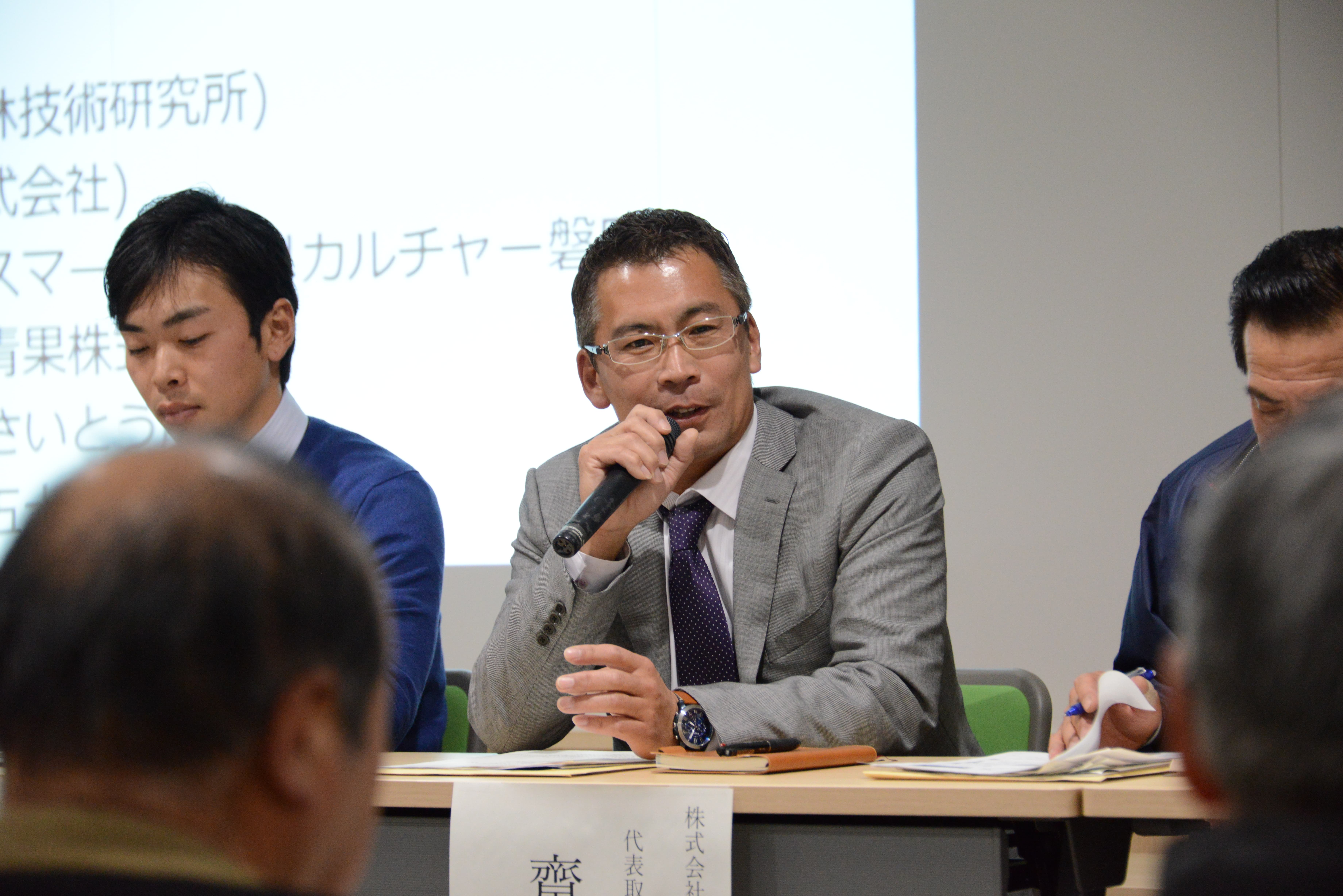 丹藤氏からは「市場の流通の視点から、安定した露地栽培の対策は可能か」との質問が出されました。大石氏は「SAC iWATAでの取り組みをはじめ、出荷予測などの研究はしていきたい。AOI-PARCはオープンイノベーションの場であり、どの事業者や研究者とマッチングすべきかを考えていく場にしていきたい」と、ビジネスマッチングによる活性化に期待を寄せました。