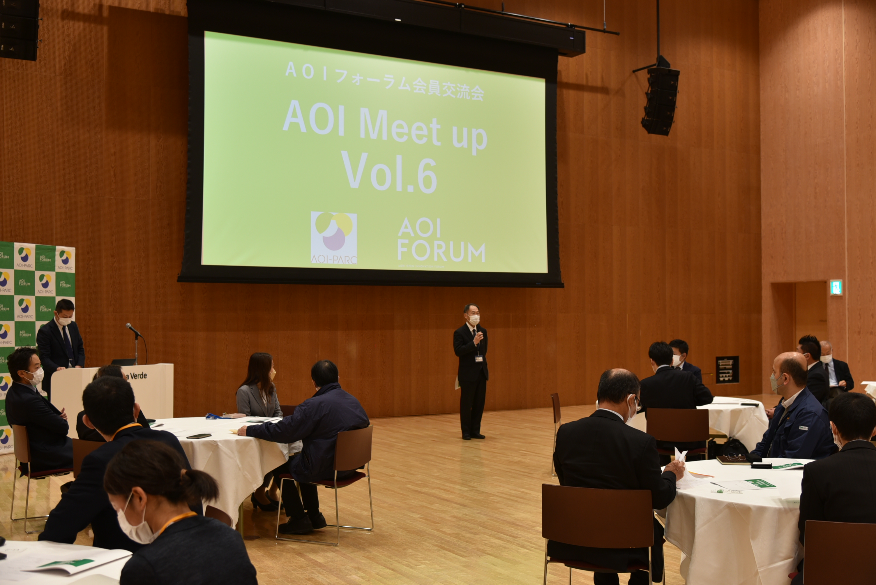 AOI機構の岩城徹雄専務理事兼事務局長は挨拶で「ぜひ、積極的に声掛けをしていただき、普段考えていること、中長期で考えていること、次のビジネス展開につながる話をしていただきたいと思います」と積極的な交流を呼び掛けました。