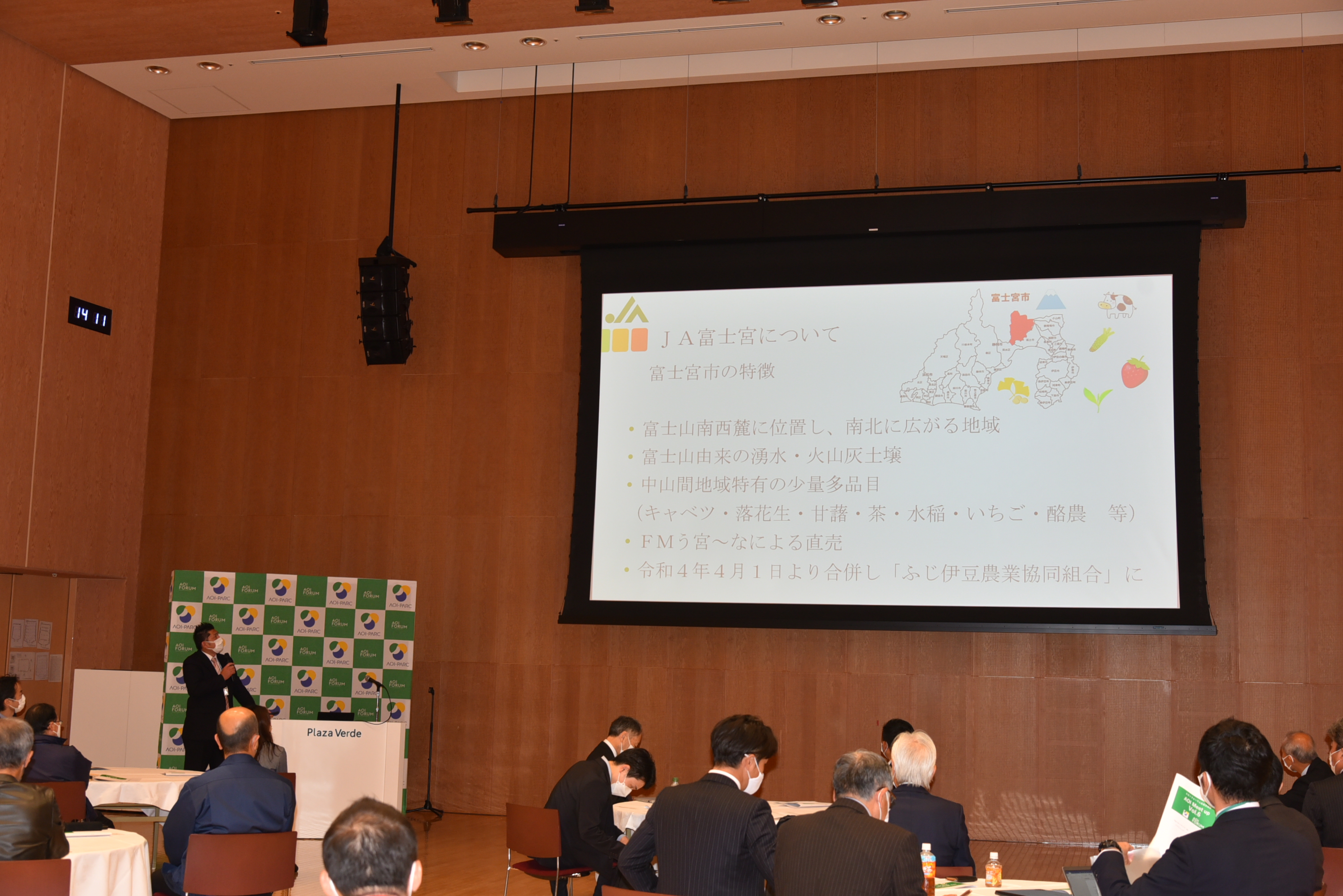 参加企業は、農業団体、粉砕機メーカー、ロボットメーカー、流通など多岐にわたりました。プログラムの中心は参加企業の5分間のプレゼンテーション。途中休憩を挟み、21会員が次々と自社の持つ技術やサービスについて発表しました。また、農業分野のどのような情報を求めているか、どのような企業とのマッチングを期待するのか、などを説明しました。